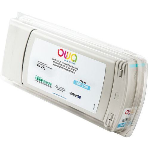 Cartouche d'encre traceur remanufacturée HP 771 Owa Approche écoresponsable : oui Consommable pour imprimante de type : Jet d'encre Encre coloris : Cyan clair Marque de l'imprimante : HP Produit reconditionné : oui Produit recyclable : Oui 100 % Produit recyclé : 98 % Réf. Fabricant : HP 771C Cartouche d'encre traceur remanufacturée HP 771 OWA. Cartouche remanufacturée de première qualité. Consommables de marque (OEM) collectés après la première utilisation et remanufacturés dans leur forme originale. Rendement de page égal ou supérieur à celui des cartouches à la marque des fabricants d’imprimantes. Qualité d'impression supérieure à la norme d'impression. Cartouche d'encre traceur remanufacturée HP 771, Marque de l'imprimante: HP, Consommable pour imprimante de type: Jet d'encre, Produit reconditionné: oui, Réf. Fabricant: HP 771C, Encre coloris: Cyan clair, Produit recyclable: Oui 100 %, Produit recyclé: 98 %, Approche écoresponsable: oui