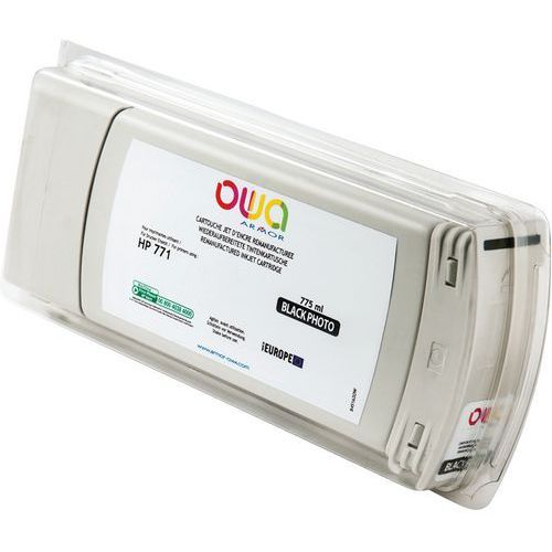 Cartouche d'encre traceur remanufacturée HP 771 Owa Approche écoresponsable : oui Consommable pour imprimante de type : Jet d'encre Encre coloris : Noir photo Marque de l'imprimante : HP Produit reconditionné : oui Produit recyclable : Oui 100 % Produit recyclé : 98 % Réf. Fabricant : HP 771C Cartouche d'encre traceur remanufacturée HP 771 OWA. Cartouche remanufacturée de première qualité. Consommables de marque (OEM) collectés après la première utilisation et remanufacturés dans leur forme originale. Rendement de page égal ou supérieur à celui des cartouches à la marque des fabricants d’imprimantes. Qualité d'impression supérieure à la norme d'impression. Cartouche d'encre traceur remanufacturée HP 771, Marque de l'imprimante: HP, Consommable pour imprimante de type: Jet d'encre, Produit reconditionné: oui, Réf. Fabricant: HP 771C, Encre coloris: Noir photo, Produit recyclable: Oui 100 %, Produit recyclé: 98 %, Approche écoresponsable: oui