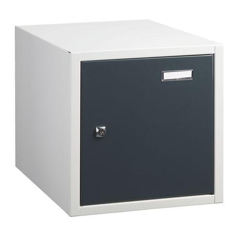- Le casier individuel petit modèle est le meuble de rangement idéal pour entreposer des sacs ou d’autres effets personnels en utilisant le moins de place possible.Sa structure monobloc en tôle d’acier de 7/10e d’épaisseur est un gage de solidité et de durabilité. Avec un revêtement laqué époxy, le casier résiste efficacement aux chocs et aux rayures.La présence d’aération au dos du casier permet d’éviter la formation de moisissures. Afin de différencier les différents casiers entre eux, le modèle bénéficie d’un porte-étiquette (étiquette non fournie).Pratique, ce modèle de casier individuel est livré monté et prêt à l’emploi. De plus, il peut être empilé et juxtaposé selon l’espace de rangement disponible. Chaque porte est équipée d’une serrure à clé dont 2 clés classiques fournies pour sécuriser son contenu.En option : socle en métal de 8 cm de haut (réf 64412).Dimensions utiles : H 31 x L 30 x P 40 cm.Dimensions hors tout : H 35 x L 35 x P 43 cm.Couleurs : Corps : gris (Ral 7035), porte : anthracite.