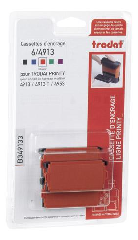 - Pour redonner à votre tampon la même qualité d’empreinte qu’avant et un contraste de timbre prononcé, optez pour la cassette d’encrage Trodat Printy 6/4913. Ce produit vous garantit un rendu régulier et net. Aucun caractère ne sera invisible !Vendu en plaque de 58 x 22 mm, ce modèle convient aux tampons encreurs Printy 4913, 4913T, 4953 et 4953T. 3 couleurs disponibles (bleu, rouge ...