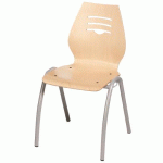 Assise épaisseur 8 mm et dossier encastrés dans le tube épaisseur 6 mm, en multiplis de hêtre vernis hydro, faciles à remplacer.Piétement en tube acier Ø25 x 1.5 mm avec renfort sous assise, finition thermolaquée.