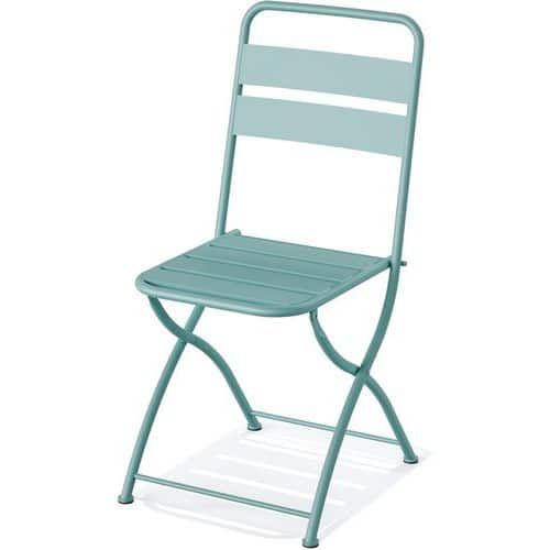 Chaise de bistrot pliable BREEZE en métal VEBA Assise coloris : Bleu clair Assise hauteur : 43 cm Assise largeur : 37 cm Assise matériau : Acier Assise profondeur : 41 cm Coloris : Bleu clair Dossier coloris : Bleu clair Dossier matériau : Acier Empilable : non Ergonomique : non Fréquence d'utilisation : Intensive Hauteur hors tout : 87 cm Largeur hors tout : 52 cm Livré monté : oui Piétement coloris : Bleu clair Poids du produit : 4.8 kg Profondeur hors tout : 44 cm Sélection télétravail : non Type de piétement : 4 pieds Chaise de bistrot BREEZE en métal disponible en 4 couleurs tendance. La chaise est pliante pour un rangement facile et rapide. C'est la compagne idéale pour aménager un coin bistrot en extérieur. A combiner avec la table de bistrot du même nom. Chaise de bistrot pliable BREEZE en métal, Type de piétement: 4 pieds, Assise matériau: Acier, Fréquence d'utilisation: Intensive, Sélection télétravail: non, Empilable: non, Assise coloris: Bleu clair, Assise largeur: 37 cm, Assise profondeur: 41 cm, Assise hauteur: 43 cm, Dossier matériau: Acier, Coloris: Bleu clair, Dossier coloris: Bleu clair, Piétement coloris: Bleu clair, Largeur hors tout: 52 cm, Profondeur hors tout: 44 cm, Hauteur hors tout: 87 cm, Poids: 4.8 kg, Livré monté: oui