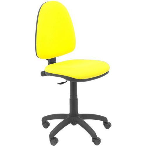 Chaise de bureau Beteta sans accoudoirs Piqueras y crespo Assise coloris : Jaune Assise hauteur maxi : 57 cm Assise hauteur mini : 45 cm Assise largeur : 48 cm Assise matériau : Tissu Assise profondeur : 46 cm Avec accoudoir : non Coloris : Jaune Contact permanent : oui Densité mousse assise : 25 kg/m³ Densité mousse dossier : 20 kg/m³ Dossier coloris : Jaune Dossier matériau : Tissu Empilable : non Ergonomique : oui Matériau : Polyamide Mécanisme : Contact permanent Option montage : Option montage Piétement coloris : Noir Poids : 6000 g Poids maxi supporté : 100 kg Réglage hauteur d'assise : oui Réglage hauteur dossier : oui Roulette Ø : 50 mm Structure matériau : Polyamide Têtière : non Chaise de bureau Beteta sans accoudoirs Piqueras y crespo. Réglable en hauteur au moyen d'un cylindre à gaz de 14 cm (position la plus basse du siège 48 cm, position la plus haute 62 cm). Mécanisme de contact permanent et réglage du dossier en hauteur, profondeur et inclinaison. Siège et dossier rembourrés en tissu BALI. Base en polyamide haute résistance avec 5 rayons et 60 cm de diamètre, de couleur noire. Roulettes en nylon, pivotantes à 360º et télescopiques de couleur noire. Chaise de bureau Beteta sans accoudoirs, Avec accoudoir: non, Assise matériau: Tissu, Têtière: non, Mécanisme: Contact permanent, Assise coloris: Jaune, Piétement coloris: Noir, Dossier coloris: Jaune, Coloris: Jaune, Matériau: Polyamide, Assise largeur: 48 cm, Assise profondeur: 46 cm, Assise hauteur mini: 45 cm, Assise hauteur maxi: 57 cm, Densité mousse assise: 25 kg/m³, Densité mousse dossier: 20 kg/m³, Roulette Ø: 50 mm, Dossier matériau: Tissu, Poids: 6000 g, Réglage hauteur dossier: oui, Empilable: non, Structure matériau: Polyamide, Poids maxi supporté: 100 kg, Contact permanent: oui, Réglage hauteur d'assise: oui