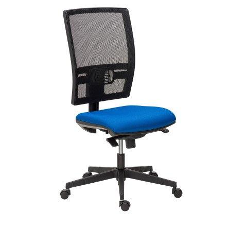 CHAISE DE BUREAU BRUNEAU ACTIV' TISSU ET MAILLE BLEU - DOSSIER HAUT SANS ACCOUDOIRS SOUTIEN LOMBAIRE - MÉCANISME CONTACT PERMANENT - PIEDS NOIR