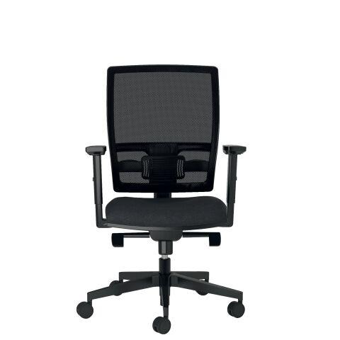 CHAISE DE BUREAU BRUNEAU ACTIV' TISSU ET MAILLE NOIR - DOSSIER HAUT ACCOUDOIRS SOUTIEN LOMBAIRE - MÉCANISME SYNCHRONE - PIEDS NOIR