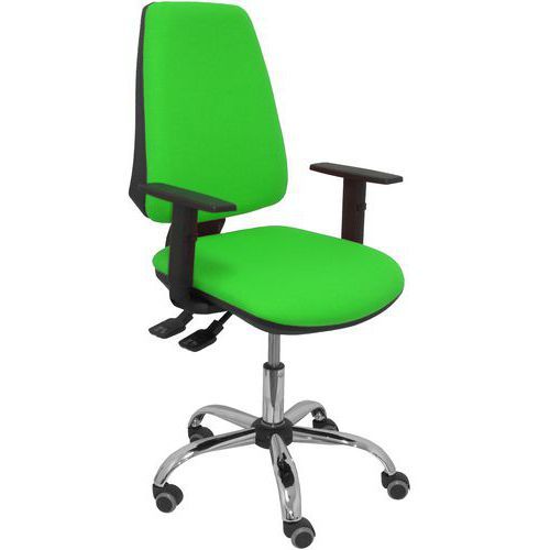 Chaise de bureau Elche S 24 horas 5 roues Piqueras y crespo Accoudoir réglage : En hauteur Assise coloris : Vert fluo Assise hauteur maxi : 52 cm Assise hauteur mini : 42 cm Assise largeur : 46 cm Assise matériau : Tissu Assise profondeur : 47 cm Assise réglable : oui Avec accoudoir : oui Charge maxi : 120 kg Coloris : Vert fluo Densité mousse assise : 30 kg/m³ Densité mousse dossier : 20 kg/m³ Dossier coloris : Vert fluo Dossier largeur : 44 cm Dossier matériau : Tissu Empilable : non Ergonomique : oui Impact Environnemental : C Matériau : Polyamide Mécanisme : Asynchrone Norme EN : EN 1335 Piétement coloris : Noir Poids du produit : 12000 g Poids maxi supporté : 120 kg Réglage hauteur d'assise : oui Roulette Ø : 50 mm Structure matériau : Chrome Technique asynchrone : oui Têtière : non Chaise de bureau Elche S conçue pour une utilisation intensive 24 heures. Hauteur réglable grâce à un cylindre à gaz. Mécanisme asynchrone pour un réglage séparé du dossier et du siège. Rembourrage en mousse viscoélastique pour un confort optimal. Siège et dossier disponibles dans le tissu et la couleur de votre choix. Chaise de bureau Elche S 24 horas 5 roues, Avec accoudoir: oui, Assise matériau: Tissu, Têtière: non, Mécanisme: Asynchrone, Assise coloris: Vert fluo, Piétement coloris: Noir, Dossier coloris: Vert fluo, Coloris: Vert fluo, Matériau: Polyamide, Assise largeur: 46 cm, Accoudoir réglage: En hauteur, Assise profondeur: 47 cm, Assise hauteur mini: 42 cm, Assise hauteur maxi: 52 cm, Densité mousse assise: 30 kg/m³, Densité mousse dossier: 20 kg/m³, Roulette Ø: 50 mm, Charge maxi: 120 kg, Dossier matériau: Tissu, Poids du produit: 12000 g, Empilable: non, Structure matériau: Chrome, Dossier largeur: 44 cm, Poids maxi supporté: 120 kg, Ergonomique: oui, Technique asynchrone: oui, Assise réglable: oui, Réglage hauteur d'assise: oui