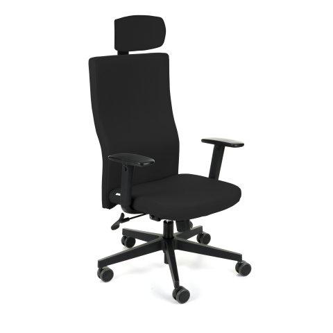 CHAISE DE BUREAU ERGONOMIQUE TEAM PLUS, TISSU, AVEC ACCOUDOIRS 1D ET APPUI-TÊTE, MÉCANISME SYNCHRONE, PIEDS NOIRS - NOIR