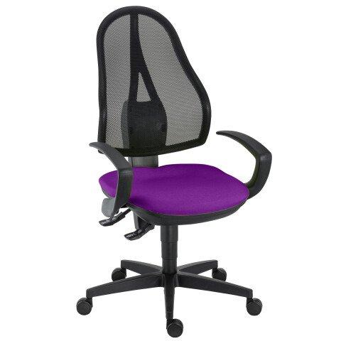 CHAISE DE BUREAU HOLLY TISSU ET MAILLE VIOLET - DOSSIER HAUT ACCOUDOIRS - MÉCANISME CONTACT PERMANENT - PIEDS NOIR