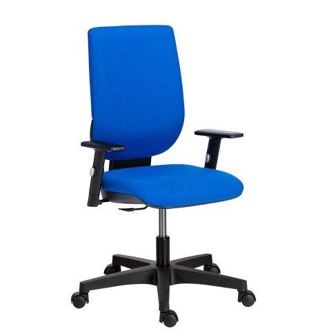 CHAISE DE BUREAU NAO TISSU BLEU - DOSSIER HAUT ACCOUDOIRS - MÉCANISME CONTACT PERMANENT - PIEDS NOIR