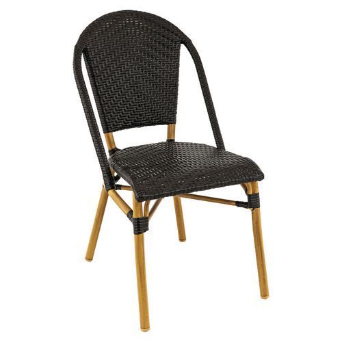 Chaise Exterieure Empilable En Alu Bamboo Tressage Sorbonne Assise coloris : Noir Assise matériau : Polyéthylène Dossier coloris : Noir Dossier matériau : Polyéthylène Empilable : oui Environnement : Bureau Environnement : Milieu restauration Largeur hors tout : 46 cm Piétement coloris : Marron clair Type de pied : Patins Type de piétement : 4 pieds Type de siège : Chaise La chaise Sorbonne donne à votre terrasse la French Touch intemporelle. Légère, maniable et empilable. Peut être associée au fauteuil Madeleine, ainsi qu'au tabouret Passy. Disponible en 2 coloris. Chaise Exterieure Empilable, Type de piétement: 4 pieds, Type de pied: Patins, Assise matériau: Polyéthylène, Type de siège: Chaise, Empilable: oui, Assise coloris: Noir, Dossier coloris: Noir, Piétement coloris: Marron clair, Largeur hors tout: 46 cm, Dossier matériau: Polyéthylène