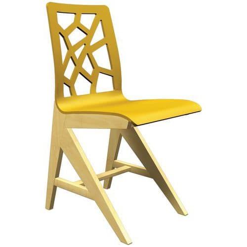 Chaise Iriss coque bois appui sur table hêtre naturel Approche écoresponsable : oui Appui sur table : oui Assise coloris : Jaune Assise hauteur : 46 cm Assise matériau : Contreplaqué Dossier coloris : Jaune Dossier matériau : Contreplaqué Emballage recyclable : Oui 100 % Emballage recyclé : 100 % Empilable : non Environnement : Milieu restauration Fréquence d'utilisation : Régulière Garantie client : 3 ans Hauteur hors tout : 91 cm Largeur hors tout : 44 cm Licence PEFC : 1031885 Livré monté : oui Piétement coloris : Hêtre Piétement matériaux : Hêtre massif Poids du produit : 5.6 kg Produit recyclable : Oui 100 % Profondeur hors tout : 52 cm Taille mobilier : T6 Type de pied : Patins Type de piétement : En V Type de siège : Chaise Usage : Collectivité Chaise Iriss avec coque en contreplaqué moulé épaisseur 10 mm. Piètement en hêtre massif, épaisseur 27 mm, verni naturel. Assemblage tenons mortaises. Patins plastiques Chaise Iriss coque bois, Type de piétement: En V, Type de pied: Patins, Assise matériau: Contreplaqué, Taille mobilier: T6, Type de siège: Chaise, Fréquence d'utilisation: Régulière, Empilable: non, Usage: Collectivité, Assise coloris: Jaune, Assise hauteur: 46 cm, Dossier matériau: Contreplaqué, Dossier coloris: Jaune, Piétement matériau: Hêtre massif, Piétement coloris: Hêtre, Largeur hors tout: 44 cm, Profondeur hors tout: 52 cm, Hauteur hors tout: 91 cm, Poids: 5.6 kg, Livré monté: oui, Appui sur table: oui, Emballage recyclable: Oui 100 %, Emballage recyclé: 100 %, Produit recyclable: Oui 100 %, Approche écoresponsable: oui, Licence PEFC: 1031885