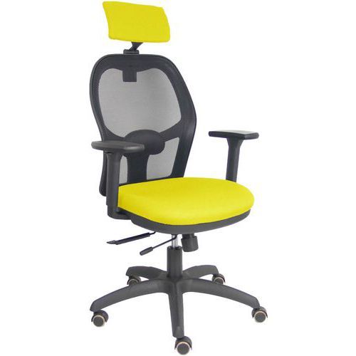 Chaise de bureau Jorquera accoudoir réglable 3D Piqueras y crespo Assise coloris : Jaune Assise hauteur maxi : 53 cm Assise hauteur mini : 45 cm Assise largeur : 48 cm Assise matériau : PVC Assise profondeur : 46 cm Assise réglable : oui Avec accoudoir : oui Charge maxi : 120 kg Coloris : Jaune Densité mousse assise : 50 kg/m³ Dossier coloris : Vert Dossier largeur : 49 cm Empilable : non Ergonomique : oui Impact Environnemental : D Matériau : Polyamide Mécanisme : Synchrone Norme EN : EN 1335 Piétement coloris : Noir Poids : 18000 g Poids maxi supporté : 120 kg Réglage hauteur d'assise : oui Renfort lombaire : oui Roulette Ø : 50 mm Synchrone technique : oui Têtière : oui Chaise de bureau Jorquera avec accoudoir réglable 3D pour un confort optimal. Mécanisme synchrone avec traslack pour un déplacement horizontal facile. Dossier en maille respirante pour une meilleure aération. Appuitête et rembourrage réglables pour s'adapter à vos besoins. Siège rembourré dans le tissu et la couleur de votre choix pour une personnalisation maximale. Chaise de bureau Jorquera accoudoir réglable 3D, Avec accoudoir: oui, Assise matériau: PVC, Têtière: oui, Mécanisme: Synchrone, Assise coloris: Jaune, Piétement coloris: Noir, Dossier coloris: Vert, Coloris: Jaune, Matériau: Polyamide, Assise largeur: 48 cm, Assise profondeur: 46 cm, Assise hauteur mini: 45 cm, Assise hauteur maxi: 53 cm, Densité mousse assise: 50 kg/m³, Roulette Ø: 50 mm, Charge maxi: 120 kg, Poids: 18000 g, Empilable: non, Dossier largeur: 49 cm, Poids maxi supporté: 120 kg, Synchrone technique: oui, Renfort lombaire: oui, Assise réglable: oui, Réglage hauteur d'assise: oui