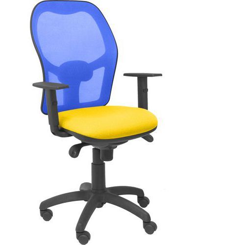 Chaise de bureau Jorquera bras réglable dossier bleuPiqueras y crespo Accoudoir réglage : En hauteur Assise coloris : Jaune Assise hauteur maxi : 54 cm Assise hauteur mini : 48 cm Assise largeur : 48 cm Assise matériau : PVC Assise profondeur : 46 cm Assise réglable : oui Avec accoudoir : oui Charge maxi : 120 kg Coloris : Jaune Dossier coloris : Bleu Dossier largeur : 49 cm Ergonomique : oui Impact Environnemental : D Matériau : PVC Mécanisme : Synchrone Norme EN : EN 1335 Piétement coloris : Noir Poids du produit : 18000 g Poids maxi supporté : 120 kg Réglage hauteur d'assise : oui Renfort lombaire : oui Roulette Ø : 50 mm Synchrone technique : oui Têtière : non Chaise de bureau Jorquera avec accoudoirs réglables pour un confort personnalisé. Mécanisme synchro avec régulateur de tension pour une utilisation facile. Dossier en maille respirante pour une meilleure ventilation. Disponible en 7 couleurs pour s'adapter à votre espace de travail. Mousse injectée indéformable pour une durabilité accrue. Chaise de bureau Jorquera bras réglable dossier bleuPiqueras y crespo, Avec accoudoir: oui, Assise matériau: PVC, Têtière: non, Mécanisme: Synchrone, Assise coloris: Jaune, Piétement coloris: Noir, Dossier coloris: Bleu, Coloris: Jaune, Matériau: PVC, Assise largeur: 48 cm, Accoudoir réglage: En hauteur, Assise profondeur: 46 cm, Assise hauteur mini: 48 cm, Assise hauteur maxi: 54 cm, Roulette Ø: 50 mm, Charge maxi: 120 kg, Poids du produit: 18000 g, Dossier largeur: 49 cm, Poids maxi supporté: 120 kg, Ergonomique: oui, Synchrone technique: oui, Renfort lombaire: oui, Assise réglable: oui, Réglage hauteur d'assise: oui