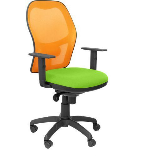 Chaise de bureau Jorquera bras reglable dossier Piqueras y crespo Accoudoir réglage : En hauteur Assise coloris : Vert Assise hauteur maxi : 54 cm Assise hauteur mini : 48 cm Assise largeur : 48 cm Assise matériau : PVC Assise profondeur : 46 cm Assise réglable : oui Avec accoudoir : oui Charge maxi : 120 kg Coloris : Vert Dossier coloris : Orange Dossier largeur : 49 cm Ergonomique : oui Impact Environnemental : D Matériau : PVC Mécanisme : Synchrone Norme EN : EN 1335 Piétement coloris : Noir Poids du produit : 18000 g Poids maxi supporté : 120 kg Réglage hauteur d'assise : oui Renfort lombaire : oui Roulette Ø : 50 mm Synchrone technique : oui Têtière : non Chaise de bureau Jorquera avec accoudoirs réglables pour un confort optimal. Mécanisme synchro avec régulateur de tension pour une utilisation facile. Dossier en maille respirante pour une meilleure aération. Disponible en 7 couleurs pour s'adapter à votre espace de travail. Mousse injectée indéformable pour une durabilité accrue. Chaise de bureau Jorquera bras reglable dossier, Avec accoudoir: oui, Assise matériau: PVC, Têtière: non, Mécanisme: Synchrone, Assise coloris: Vert, Piétement coloris: Noir, Dossier coloris: Orange, Coloris: Vert, Matériau: PVC, Assise largeur: 48 cm, Accoudoir réglage: En hauteur, Assise profondeur: 46 cm, Assise hauteur mini: 48 cm, Assise hauteur maxi: 54 cm, Roulette Ø: 50 mm, Charge maxi: 120 kg, Poids du produit: 18000 g, Dossier largeur: 49 cm, Poids maxi supporté: 120 kg, Ergonomique: oui, Synchrone technique: oui, Renfort lombaire: oui, Assise réglable: oui, Réglage hauteur d'assise: oui