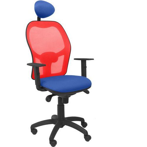 Chaise de bureau Jorquera avec dossier rouge Piqueras y crespo Accoudoir réglage : En hauteur Assise coloris : Bleu Assise hauteur maxi : 54 cm Assise hauteur mini : 48 cm Assise largeur : 48 cm Assise matériau : Tissu Assise profondeur : 46 cm Assise réglable : oui Avec accoudoir : oui Charge maxi : 120 kg Coloris : Bleu Dossier coloris : Rouge Dossier largeur : 49 cm Dossier matériau : PVC Ergonomique : oui Impact Environnemental : D Matériau : Nylon Mécanisme : Synchrone Norme EN : EN 1335 Piétement coloris : Noir Poids : 18000 g Poids maxi supporté : 120 kg Réglage hauteur d'assise : oui Renfort lombaire : oui Roulette Ø : 50 mm Synchrone technique : oui Têtière : oui Chaise de bureau Jorquera conçue pour un confort optimal. Dotée d'un mécanisme synchro avec régulateur de tension. Dossier en maille respirante pour une meilleure aération. Disponible en 7 couleurs pour s'adapter à votre espace de travail. Siège rembourré avec mousse injectée indéformable pour un soutien durable. Chaise de bureau Jorquera avec dossier rouge, Avec accoudoir: oui, Assise matériau: Tissu, Têtière: oui, Mécanisme: Synchrone, Assise coloris: Bleu, Piétement coloris: Noir, Dossier coloris: Rouge, Coloris: Bleu, Matériau: Nylon, Assise largeur: 48 cm, Accoudoir réglage: En hauteur, Assise profondeur: 46 cm, Assise hauteur mini: 48 cm, Assise hauteur maxi: 54 cm, Roulette Ø: 50 mm, Charge maxi: 120 kg, Dossier matériau: PVC, Poids: 18000 g, Dossier largeur: 49 cm, Poids maxi supporté: 120 kg, Synchrone technique: oui, Renfort lombaire: oui, Assise réglable: oui, Réglage hauteur d'assise: oui