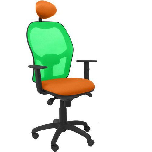 Chaise de bureau Jorquera avec dossier vert Piqueras y crespo Accoudoir réglage : En hauteur Assise coloris : Orange Assise hauteur maxi : 54 cm Assise hauteur mini : 48 cm Assise largeur : 48 cm Assise matériau : Tissu Assise profondeur : 46 cm Assise réglable : oui Avec accoudoir : oui Charge maxi : 120 kg Coloris : Orange Dossier coloris : Vert Dossier largeur : 49 cm Dossier matériau : PVC Ergonomique : oui Impact Environnemental : D Matériau : Nylon Mécanisme : Synchrone Norme EN : EN 1335 Piétement coloris : Noir Poids : 18000 g Poids maxi supporté : 120 kg Réglage hauteur d'assise : oui Renfort lombaire : oui Roulette Ø : 50 mm Synchrone technique : oui Têtière : oui Chaise de bureau Jorquera conçue pour un confort optimal. Dotée d'un mécanisme synchro avec régulateur de tension. Dossier en maille respirante pour une meilleure aération. Disponible en 7 couleurs pour s'adapter à votre espace de travail. Siège rembourré avec mousse injectée indéformable pour un soutien durable. Chaise de bureau Jorquera avec dossier vert, Avec accoudoir: oui, Assise matériau: Tissu, Têtière: oui, Mécanisme: Synchrone, Assise coloris: Orange, Piétement coloris: Noir, Dossier coloris: Vert, Coloris: Orange, Matériau: Nylon, Assise largeur: 48 cm, Accoudoir réglage: En hauteur, Assise profondeur: 46 cm, Assise hauteur mini: 48 cm, Assise hauteur maxi: 54 cm, Roulette Ø: 50 mm, Charge maxi: 120 kg, Dossier matériau: PVC, Poids: 18000 g, Dossier largeur: 49 cm, Poids maxi supporté: 120 kg, Synchrone technique: oui, Renfort lombaire: oui, Assise réglable: oui, Réglage hauteur d'assise: oui