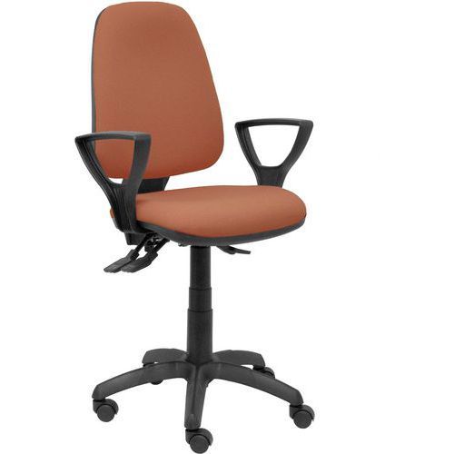 Chaise de bureau Tarancón accoudoirs fixes Piqueras y crespo Accoudoir matériau : Polyamide Accoudoir réglage : Fixe Assise coloris : Marron Assise hauteur maxi : 59 cm Assise hauteur mini : 53 cm Assise largeur : 47 cm Assise matériau : Tissu Assise profondeur : 46 cm Assise réglable : oui Avec accoudoir : oui Charge maxi : 100 kg Coloris : Marron Contact permanent : oui Densité mousse assise : 25 kg/m³ Densité mousse dossier : 20 kg/m³ Dossier coloris : Marron Dossier largeur : 42 cm Dossier matériau : Tissu Empilable : non Ergonomique : oui Impact Environnemental : C Matériau : Polyamide Mécanisme : Contact permanent Piétement coloris : Noir Poids : 9000 g Poids maxi supporté : 100 kg Réglage hauteur d'assise : oui Réglage hauteur dossier : oui Renfort lombaire : oui Roulette Ø : 50 mm Structure matériau : Polyamide Têtière : non Chaise de bureau Tarancón accoudoirs fixes Piqueras y crespo. Hauteur réglable par cylindre à gaz. Mécanisme asynchrone qui permet de régler séparément le siège et le dossier. Le siège et le dossier sont rembourrés dans le tissu et la couleur de votre choix. Base en polyamide noir haute résistance. Chaise de bureau Tarancón accoudoirs fixes, Avec accoudoir: oui, Assise matériau: Tissu, Têtière: non, Mécanisme: Contact permanent, Assise coloris: Marron, Piétement coloris: Noir, Dossier coloris: Marron, Coloris: Marron, Matériau: Polyamide, Assise largeur: 47 cm, Accoudoir réglage: Fixe, Assise profondeur: 46 cm, Assise hauteur mini: 53 cm, Assise hauteur maxi: 59 cm, Densité mousse assise: 25 kg/m³, Densité mousse dossier: 20 kg/m³, Accoudoir matériau: Polyamide, Roulette Ø: 50 mm, Charge maxi: 100 kg, Dossier matériau: Tissu, Poids: 9000 g, Réglage hauteur dossier: oui, Empilable: non, Structure matériau: Polyamide, Dossier largeur: 42 cm, Poids maxi supporté: 100 kg, Contact permanent: oui, Renfort lombaire: oui, Assise réglable: oui, Réglage hauteur d'assise: oui