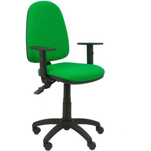 Chaise de bureau Tribaldos accoudoirs réglables Piqueras y crespo Accoudoir matériau : Polyamide Accoudoir réglage : En hauteur Assise coloris : Vert Assise hauteur maxi : 58 cm Assise hauteur mini : 46 cm Assise largeur : 60 cm Assise matériau : Tissu Assise profondeur : 44 cm Assise réglable : oui Avec accoudoir : oui Charge maxi : 100 kg Coloris : Vert Contact permanent : oui Densité mousse assise : 25 kg/m³ Densité mousse dossier : 20 kg/m³ Dossier coloris : Vert Dossier matériau : Tissu Empilable : non Ergonomique : oui Impact Environnemental : A Matériau : Polyamide Mécanisme : Contact permanent Piétement coloris : Noir Poids : 9000 g Poids maxi supporté : 100 kg Réglage hauteur d'assise : oui Réglage hauteur dossier : oui Renfort lombaire : oui Roulette Ø : 50 mm Structure matériau : Polyamide Têtière : non Chaise de bureau Tribaldos avec accoudoirs réglables. Hauteur ajustable grâce à un cylindre à gaz de 12 cm. Mécanisme de contact permanent à double sens pour un réglage précis. Siège et dossier rembourrés en tissu BALI pour un confort optimal. Base en polyamide haute résistance pour une durabilité accrue. Chaise de bureau Tribaldos accoudoirs réglables, Avec accoudoir: oui, Assise matériau: Tissu, Têtière: non, Mécanisme: Contact permanent, Assise coloris: Vert, Piétement coloris: Noir, Dossier coloris: Vert, Coloris: Vert, Matériau: Polyamide, Assise largeur: 60 cm, Accoudoir réglage: En hauteur, Assise profondeur: 44 cm, Assise hauteur mini: 46 cm, Assise hauteur maxi: 58 cm, Densité mousse assise: 25 kg/m³, Densité mousse dossier: 20 kg/m³, Accoudoir matériau: Polyamide, Roulette Ø: 50 mm, Charge maxi: 100 kg, Dossier matériau: Tissu, Poids: 9000 g, Réglage hauteur dossier: oui, Empilable: non, Structure matériau: Polyamide, Poids maxi supporté: 100 kg, Contact permanent: oui, Renfort lombaire: oui, Assise réglable: oui, Réglage hauteur d'assise: oui
