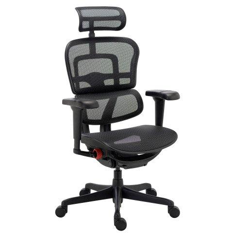 - Gagnez en productivité et confort avec l'Ergohuman Ultimate, une chaise ultra ergonomique conçue pour des performances optimales. Mécanisme du siège :Fauteuil avec mécanisme synchrone : le dossier et l’assise s’incline de manière synchroniséeDossier inclinable avec blocable sur 4 positions et ce jusqu'à 134°Commandes du siège par seulement 2 boutons de réglage, facile d’utilisationAssise :La maille souple apporte un confort maximal, temps d’assise jusqu’à 8h. Tout en maille élastomère : respirable, souple et confortableL’assise ergonomique n’appuie pas sur l’arrière des jambesRéglage en hauteur fluide par vérin de H 44,5 à 53,5 cmAssise réglable en profondeur sur 50 mmDimensions L 51,5 x P 39 à P 44 cmDossier :Profitez d’un soutien dorsal de niveau supérieurUn dossier en maille souple qui accompagnera chacun de vos mouvementsDossier réglable en hauteur6 positions de hauteur possible de 66,5 à 78,5 cm (appui-tête inclus)Dossier double avec partie haute qui supporte le haut du dos et la partie basse avec support lombaire réglable en profondeur Appui-tête :Réglable en hauteur et inclinaisonAppui-tête maille souple et respiranteAccoudoirs :Les accoudoirs sont réglables sur 5 dimensions : hauteur, largeur, profondeur, angle pivotant et inclinaison vers le haut. Cela est idéal pour le travail sur PC portable ou pour de longues heures de gaming.Accoudoirs en polyuréthane souple, agréable au toucherPiètements :5 branches, en polyamide noir, Ø 66.5 cmRoulettes Ø 65 mm en plastique noir, pour sol dur et moquetteEnvironnement et normes :Certifié BIFMA, normes pour la stabilité, la résistance et l’usure du mobilier de bureauCertificat conforme à la norme EN 1335 1 et 2 (Type A)Réglages et personnalisation:Une vidéo explicative est à votre dispositionAttention le cintre sur le dossier du siège n'est pas inclus