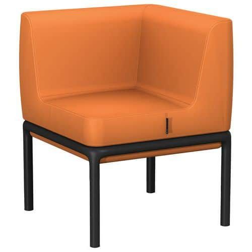Chauffeuse d'angle Lotua enduit PVC _ Sokoa Assise hauteur : 44.5 cm Assise largeur : 62 cm Assise profondeur : 40 cm Avec accoudoir : non Classement au feu : M1 Coloris : Orange Densité mousse assise : 40 kg/m³ Densité mousse dossier : 30 kg/m³ Finitions : Tissu enduit PVC Garantie client : 5 ans Matériau : Polyéther Nb de places : 1 Piétement matériaux : Acier Structure coloris : Noir Type de pied : Patins Type de piétement : 4 pieds Type de siège : Chauffeuse Utilisation du siège : Accueil La gamme est construite sur le principe d’une structure métal carrée en 60x60 cm dans laquelle viennent s’insérer plusieurs types de coussins d’assise. Les structures peuvent se fixer entre elles grâce une pièce de liaison en «U» clipsable et/ou vissable permettant ainsi de créer un nombre infini de compositions. Finition tissu Ginkgo enduit PVC conforme à la norme EN 10211 et 2 cigarette, allumette, M1, AM18 Chauffeuse d'angle Lotua enduit PVC _ Sokoa, Matériau: Polyéther, Utilisation du siège: Accueil, Type de siège: Chauffeuse, Nb de places: 1, Coloris: Orange, Classement au feu: M1, Piétement matériau: Acier, Structure coloris: Noir, Assise largeur: 62 cm, Assise hauteur: 44.5 cm, Assise profondeur: 40 cm, Densité mousse assise: 40 kg/m³, Densité mousse dossier: 30 kg/m³, Finition: Tissu enduit PVC, Avec accoudoir: non, Type de piétement: 4 pieds, Type de pied: Patins