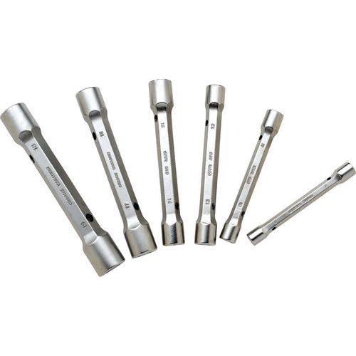 La clé à tube est un outil de serrage qui se place sur les pans, autour des écrous et têtes de vis pour entraîner un mouvement de rotation à un objet. Généralement conçu en acier au carbone traité, il permet de réaliser divers travaux de bricolage, notamment de visser un robinet par-dessous un évier. Classée parmi les clés « femelles » ou clés fixes, la clé à tube est choisie en fonction de la taille des écrous et vis. Pour éviter l’effet de levier, c’est-à-dire limiter l’effort indispensable pour le serrage et le desserrage, le corps de l’outil doit être long lorsque la taille de la boulonnerie est importante. Version simplifiée de la clé à pipe, la clé à tube est munie d’un tuyau en métal de forme hexagonale plié à un angle droit. Les clés à tube pour lavabo mitigeur se présentent quant à eux sous une forme rectiligne afin de visser dans des endroits difficiles d’accès. Ce type de clés spéciales mitigeurs sert à monter et démonter les mitigeurs et robinets sous les lavabos. Pour ne pas être gêné par les longues tiges filetées, ils sont équipés d’un long manche creux et d’embouts creux. Certains modèles sont adaptés à toutes sortes de robinets. En outre, la clé à tube coudée présente un corps hexagonal avec un coude nervuré résistant. Il simplifie la prise d’écrous noyés. Pour faciliter vos travaux de bricolage, de nombreux fabricants tels que Facom, Mr Plomberie, KS Tools ou Outifrance mettent à votre disposition une large variété de clés à tube.