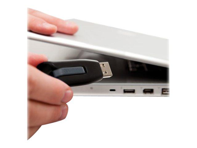 - - Interface USB 3.0 SuperSpeed.- Le dispositif de « fermeture coulissante » protège le connecteur USB lorsqu'il n'est pas utilisé.- Design compact et élégant.- Assistance technique par téléphone gratuite.- Garantie limitée de 2 ans VerbatimDotée d'une interface USB 3.0 pour le transfert de données SuperSpeed, la clé USB Store 'n' Go V3 est jusqu'à 10 fois plus rapide qu'une interface USB 2.0, permettant ainsi d'augmenter la vitesse de transfert et d'enregistrer des fichiers plus volumineux de n'importe quel type.La conception de la clé USB V3 offre également une protection pour les connecteurs USB, grâce à un dispositif de « fermeture coulissante ». Ce dispositif permet de maintenir la clé USB en place lors de son utilisation et de la remettre en position fermée de manière à protéger le connecteur lorsqu'il n'est pas utilisé.À la fois simple et facile d'utilisation, branchez-la tout simplement dans n'importe quel port USB 3.0 (également compatible avec les ports USB 2.0) et glissez/déposez vos dossiers et vos fichiers.