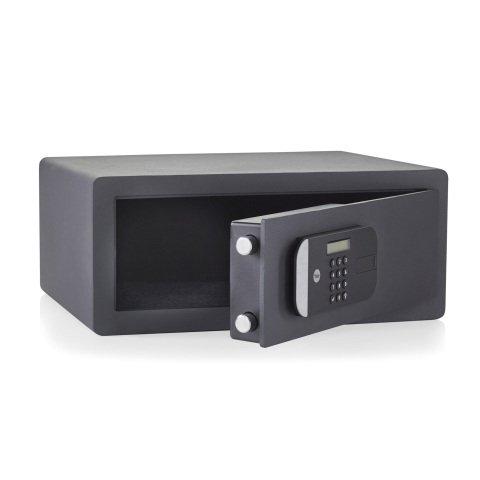 - Coffre-fort motorisé de haute sécurité. Protège vos documents, bijoux, clés ou tout autre objet de valeur.Caractéristiques: Plaque anti-perçage et porte découpée au laser pour une protection contre tous types d'attaque.Ouverture de secours de haute sécurité (1 clé à double panneton incluse) par pile 9V (non inclus).Deux pênes anti-sciage de 20 mm.Déverrouillage par code PIN.Verrouillage de sécurité après saisie de 3 codes erronés.Verrouillage motorisé avec ouverture automatique de la porte.Ecran LCD intuitif.Eclairage intérieur pour une meilleure visibilité du contenu.Crochets à l'intérieur du coffre pour accrocher des clés ou de petits objets.Tablette amovible pour laisser plus d'espace si besoin (non repositionnable sur un autre niveau). 4 piles AA incluses à positionner à l'intérieurOuverture de secours: Clé à double panneton x1 / Pile 9V (non incluse)Capacité 18,6 L:Dimensions totales: H 25 x L 35 x P 30 cmDimensions intérieures : H 24 x L 33,7 x P 23 cmTablette amovible disposée à H 12,5 cm du bas du coffreCapacité 24 L format PC : Dimensions totales: H 20 x L 35 x P 36 cmDimensions intérieures: H 19 x L 49,7 x P 28 cmCapacité 35,5 L: Dimensions totales: H 40 x L 35 x P 34 cmDimensions intérieures: H 39 x L 33,7 x P 27 cmCapacité 49 L: Dimensions totales: H 52 x L 35 x P 36 cmDimensions intérieures: H 51 x L 33,7 x P 29 cmFixation: Doit être fixé solidement au mur ou au sol avec le kit de fixation fourni.Normes : Plusieurs certifications justifient le niveau de sécurité ce coffre. Il est ainsi certifié Sold Secure Silver (norme britannique) ou SKG 2* (norme hollandaise) pour assurer une protection maximale contre l’effraction.