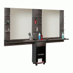 Descriptif du produit :Structure bois aggloméré bicolore et modulableFinition stratifié avec plateau de 30 mm à bord anti-chocsSupport séchoir pivotantComprend : 1 poste de travail avec miroir et repose-pieds, 1 étagère grand modèle et 1 meuble intermédiaire solDim. du poste : long 1,20 m (dont miroir 0,80 m)Hauteur total 2,01 m.Haut. sol/plan de travail : 87 cmProf.meuble/plan : 37 cmProf.tablettes verres : 17 ...