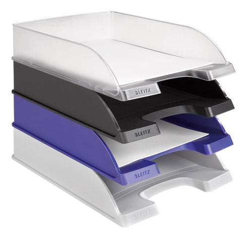 - Pratique et esthétique, la corbeille standard Plus Leitz est idéale pour classer ou organiser vos courriers et documents sur votre bureau. Grâce à ses belles dimensions (H7 x L25,4 x P34 cm), elle peut accueillir jusqu'à 500 feuilles 24 x 32 cm. Pratique, la grande découpe à l'avant permet d'accéder facilement à toutes les feuilles et dossiers qu'elle contient. Grâce à l'indexation possible de chaque côté, vous pourrez vous organiser comme vous le souhaitez et vous saurez toujours précisément où se trouve chaque dossier. Et si vous le souhaitez, vous pouvez même créer et imprimer vos étiquettes en ligne sur [...]e atout de ce modèle : sa solidité ! Fabriqué en polystyrène recyclable et doté d’un fond plein, il fait preuve de résistance exceptionnelle. Achetez-les en grande quantité, vous avez tout à y gagner. Empilables verticalement ou en escalier et compatibles avec les autres modèles Plus Leitz (slim et Jumbo), ces professionnelles du rangement occuperont un minimum de place dans votre espace de travail. Blanc translucide (givré), noir opaque, bleu opaque ou gris opaque. A vous de choisir votre coloris selon votre style et vos envies