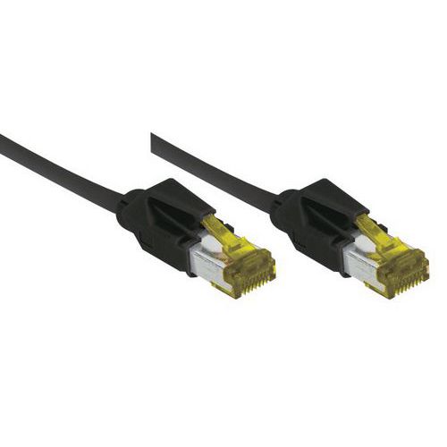 Cordon RJ45 sur câble catégorie 7 S/FTP LSOH snagless 3 m Blindage : SFTP Catégorie : 6A Type de câble : RJ45 CORDON PATCH BLINDE CAT 6A Class EA S/FTP snagless LS0H cuivre Catégorie : CAT. 6A Class EA Assemblé avec du câble DRAKA UC 900 SS27 CAT. 7 et des connecteurs HIROSE TM 31 Fréquence : 500 MHz Impédance : 100 ohms Conducteur : cuivre Blindage : général par tresse de cuivre, paire par paire par feuille d+aluminium Norme de câblage : ANSI/TIA 568C.2 ISO 11801 Gaine : LS0H (zéro halogène) Languette de protection de l'ergot de verrouillage Conditionnement : sachet individuel Garantie : 20 ans Minimum de commande : 5 pièces pour les cordons de couleur (hors gris) Ces cordons sont personnalisables à la demande : longueur spécifique et marquage du câble à chaque extrémité. Délai et coût de réalisation : nous consulter Cordon RJ45 sur câble catégorie 7 S/FTP LSOH snagless 3 m, Catégorie: 6A, Blindage: SFTP, Type de câble: RJ45