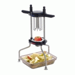 Le coupe-tomates et agrumes Tellier est parfait pour la grande cuisine : il permet des coupes franches et nettes de vos tomates, agrumes, pommes, etc., en 12 sections. Le coupe-tomates et agrumes coupe tous les fruits et légumes sans noyau avec une facilité déconcertante. Jeu de lames et poussoir interchangeables. Efficacité : grâce au centrage quasi automatique du fruit, la coupe est régulière. Les ventouses situées à la base du coupe-tomates et agrumes assurent une stabilité parfaite sur votre plan de travail. Sécurité : aucun contact des mains avec les lames, donc aucun risque de coupure. Hygiène : fabrication en acier inoxydable et matériaux composites résistants aux produits lessiviels, compatible lave-vaisselle. OPTIMISEZ VOTRE PRODUCTIVITÉ EN CUISINE : Conçu pour répondre aux besoins des gros volumes de production tels que les services de restauration collective et les chaînes de restauration rapide, notre coupe-tomates et agrumes de modèle supérieur facilite une découpe efficace en huit segments égaux de fruits et légumes sans pépins. Sa conception permet l'usage d'un bac de récupération 1/2 gastro sous l'appareil grâce à l'espacement de ses pieds. Livré avec une lame pour une division en huit, des lames et un poussoir interchangeables, ainsi que des options supplémentaires pour des coupes en 4, 6, et 12 sections sont disponibles séparément.