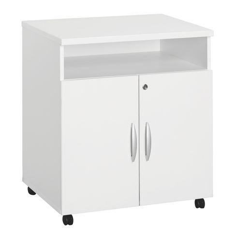 - Encombrement mini, rangement maxi ! Parfaite pour les petits espaces, la desserte bois Bruneau Excellens est très fonctionnelle. Composée d’une niche supérieure, idéale pour accéder à vos dossiers d'un simple geste, et d’une tablette réglable, elle facilite le rangement de vos documents. Robuste, cette desserte peut supporter jusqu'à 80 kg. Elle est fabriquée avec des panneaux de particules mélaminées d’une épaisseur de 19 mm et possède un plateau de 25 mm. Proposée avec une finition bien soignée, elle apportera une touche d’élégance à vos locaux. Cette desserte est également facile à déplacer grâce à 4 roulettes, dont 2 avec frein.Cette desserte Excellens est équipée de 2 portes battantes munies de serrure à verrouillage centralisé pour sécuriser vos dossiers.Dimensions totales : H 77 x L 67 x P 52 cm. Hauteur du caisson hors niche 53,8 cm.Livrée avec 2 clés..Laquelle convient le mieux en harmonie à votre bureau ?Ce produit est écoresponsable car il est certifié PEFC. Label international, PEFC assure une gestion durable des forêts et garantit l’origine et la traçabilité du bois utilisé dans la fabrication des produits..