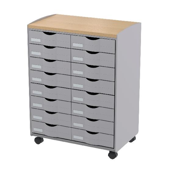 Descriptif du produit :Top de finition en panneau de particules mélaminé décor hêtre épaisseur 18 mm.Chant en ABS antichoc épaisseur 1 mm.4 roulettes pivotantes. Livrée montée.