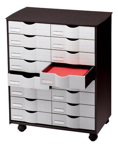 DESSERTE MOBILE 16 TIROIRS NOIR-GRIS
