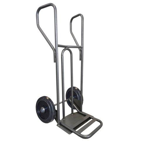 DIABLE ACIER TABLIER INCURVÉ POIGNÉE FERMÉE 250 KG ROUES CAOUTCHOUC NOIR, BAVETTE RABATTABLE