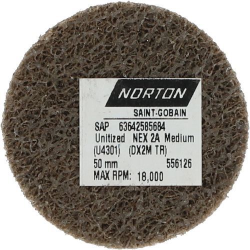 Disque abrasif SpeedLok Nex Norton Abrasif format : Disque Diamètre Ø : 50 mm Réf. Fabricant : 63642585684 Type de grain : Moyen Usage : Finition Maillage résistant, abrasif et liant résistant aux dépôts assurent une coupe agressive et un fini de qualité sans encrassement Distribution de l’abrasif sur l’ensemble du disque (parties supérieure, inférieure et côtés) de sorte que les trois faces peuvent être utilisées Polyvalent, confortable et facile d’utilisation. Utilisable sur une grande diversité de formes Ils sont idéals pour l’ébavurage léger de filetages, le ponçage des alliages, le polissage et la finition. Facile à préformer. Conserve parfaitement la forme donnée Fini brillant sur acier inoxydable et amélioration des spécifications 2SF et 3SF Disque abrasif SpeedLok Nex, Usage: Finition, Abrasif format: Disque, Réf. Fabricant: 63642585684, Type de grain: Moyen
