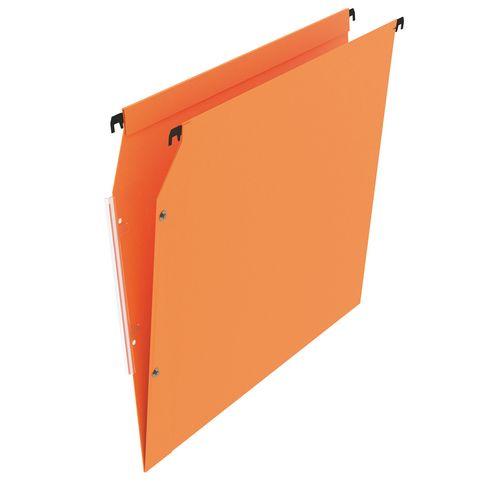 Descriptif du produit :- Pratique et résistant, le dossier suspendu orange de Bruneau a été conçu pour simplifier le classement de vos documents. Doté de tringles de suspension avec embouts en plastique sur ses extrémités, il s’accroche facilement dans vos tiroirs ou armoires et sa mise en continu se fait par bouton pression et volet d'agrafage.En carte kraft orange 220g durable, ce dossier profite d’une rés ...
