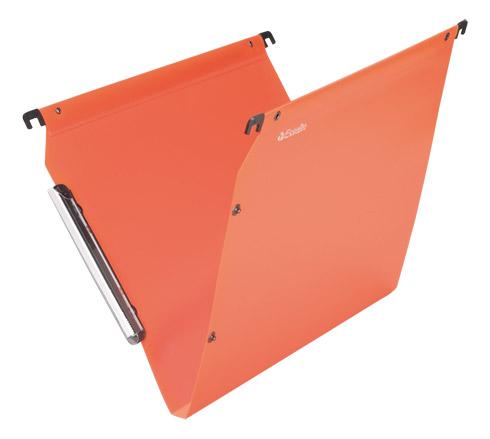 - Classez, rangez et protégez vos documents avec le dossier suspendu pour armoire polypropylène opaque LMG Esselte. Cet accessoire conjugue résistance et praticité pour un rangement réussi.En plastique polypropylène d’une épaisseur 3/10e recyclable, ce dossier suspendu de format à classer 24 x 32 cm est indéchirable et lavable. Il est proposé avec un entraxe de 33 cm et un fond de 15 mm afin de recevoir plusieurs documents.Pour une meilleure compatibilité avec les armoires, cet article possède un système de mise en continue par bouton pression. Vous pouvez l’installer facilement à l’aide d’une tringle métallique plate avec embouts plastiques et d’une fixation par rivets métal.Ce dossier suspendu dispose d’un porte-étiquette (avec étiquette fournie) de largeur 18 mm pour l’indexation. Il profite d’un espace d’écriture 3 x plus large qu’une étiquette standard. Il vous sera ainsi encore plus facile de distinguer vos documents ! Bruneau vous propose ce produit en 3 coloris au choix : rouge orangé, vert ou bleu. Idéal pour classer selon un ordre chromatique, par exemple, ou pour différencier rapidement le thème du contenu (factures, devis, études...). La garantie de 10 ans est la preuve de sa qualité supérieure