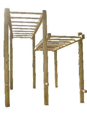 Descriptif du produit :Elément de parcours sportif pour adultes.En pin du Nord traité autoclave classe IV. Hauteur de chute : 2,15 et 1,65 m. Zone d\'implantation : 5,6 x 4,8 m. L/l/H : 260 x 180 m x 215/165 cm. 132 kg.Installation par fixation sur la longueur de scellement.Chaque agrès est livré avec son panneau d\'exercices.