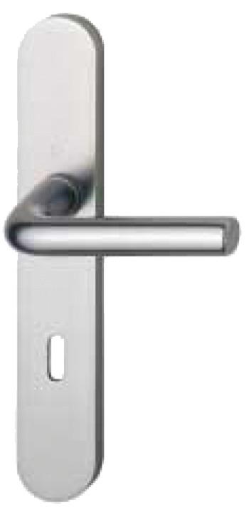 L'ensemble sur plaque ARLES de Hoppe apporte une touche d'élégance moderne à tout intérieur grâce à sa garniture en aluminium sur plaques longues. Cette conception non seulement embellit visuellement les portes mais assure également une durabilité remarquable. L'aluminium, choisi pour sa légèreté et sa résistance à la corrosion, garantit que l'ensemble de poignée de porte conserve son esthétique et sa fonctionnalité au fil des ans, même avec une utilisation intensive.Conçu pour faciliter la vie quotidienne, l'ensemble sur plaque ARLES intègre des bagues de guidage qui ne requièrent aucun entretien, assurant ainsi une expérience utilisateur aisée. Cette caractéristique élimine le besoin de lubrification périodique, offrant une utilisation fluide et silencieuse à chaque ouverture et fermeture de porte. La simplification de la maintenance permet une tranquillité d'esprit accrue et réduit les coûts à long terme associés à l'entretien des composants de la porte.L'installation de l'ensemble ARLES est conçue pour être aussi simple que possible. Avec sa fixation visible et traversante, utilisant des vis filetées M4 côté intérieur, cet ensemble garantit une solidité et une stabilité remarquables une fois installé. Cette méthode de fixation permet non seulement une installation rapide et sans tracas mais assure également que la garniture reste bien en place, évitant ainsi les désagréments liés à un desserrage potentiel. De plus, l'absence de piliers de fixation côté intérieur améliore l'esthétique de la porte, offrant un look épuré et uniforme. Caractéristiques techniques :Epaisseur de porte : 38 - 47 mmCarré : 7 mmEntraxe : 70 mmEntraxe de fixation : 195 mm