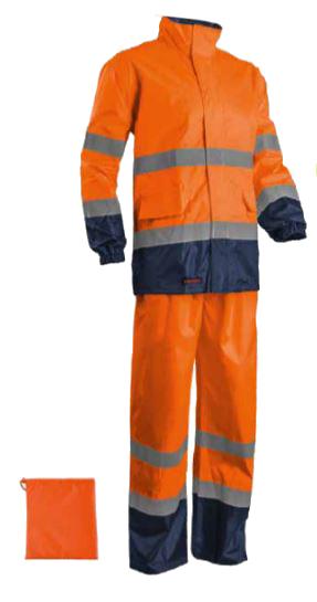 Cet ensemble HI-WAY de la marque Coverguard est très pratique pour se protéger de la pluie durant le travail sur terrain ou chantier. Il comprend d'une veste et d'un pantalon avec des bandes rétro-réfléchissantes cousues qui garantissent une meilleure visibilité. La veste est dotée d'une capuche à cordelette de serrage avec bloque cordons et de 2 poches bas plaquées avec un rabat à bandes agrippantes. Quant au pantalon, il dispose d'une taille élastiquée et de 2 passe-mains. Caractéristiques techniques :Imperméabilité : 2000 mmRespirabilité : 2000 mvpCoutures soudées et étanchéesVeste :Bandes rétroréfléchissantes cousues, 2 ceintures, 2 brassardsFermeture : à glissière simple, jusqu'en haut du colCol : officier à capuche intégréeCapuche : fixe, cordelette de serrage avec bloque cordonsManches : serrage élastiqueSerrage bas : cordelette de serrage avec bloque cordons2 poches extérieures basses plaquées avec rabat à bandes agrippantesPantalon :Bandes : rétroréfléchissantes cousues (2 ceintures aux genoux/mollets)Serrage : taille élastique 2 passe-mainsMollets extérieurs : serrage par bouton-pression Utilisations :CollectivitésEnergie (production et distribution)Industrie du bâtimentInfrastructure
