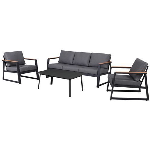 Descriptif du produit :Ensemble détente Grasse III : 1 table basse 1 canapé 2 fauteuils Proloisirs Assise coloris : Gris Assise matériau : Polyester Dossier coloris : Gris Dossier matériau : Polyester Environnement : Intérieur et extérieur Fréquence d'utilisation : Régulière Garantie client : 2 ans Livré monté : non Piétement coloris : Gris Poids : 47 kg Usage : Collectivité Ensemble d ...