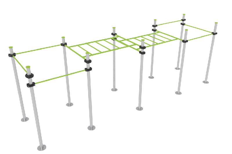 Descriptif du produit :Dispositifs: barres fixes en plusieurs hauteurs, barre verticale et deux brachiations.Un seul utilisateur sur chaque barre.L’exercice s’effectue centré sur la barre.Les exercices pratiqués sur des éléments prévus pour un usage en suspension doivent être effectués dans cette position.Barres en acier galvanisé et finition avec peinture polyester thermo durcie.Poteaux en acier galvanisés ...