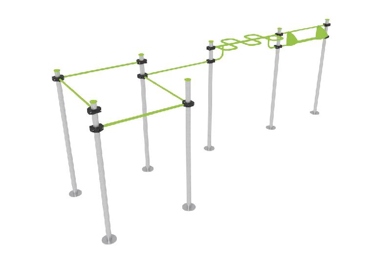 Descriptif du produit :Dispositifs: barres fixes, barre de tractions et zigzag.Un seul utilisateur sur chaque barre.L’exercice s’effectue centré sur la barre.Les exercices pratiqués sur des éléments prévus pour un usage en suspension doivent être effectués dans cette position.Barres en acier galvanisé et finition avec peinture polyester thermo durcie.Poteaux en acier galvanisés à chaud.Visserie anti vandal ...