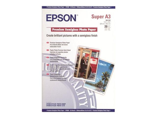 Descriptif du produit :- Epson Pap Photo Premium Semi Glacé A3+ (20f./251g). Type de finition: Semi-brillant, Poids du support: 251 g/m², Couleur du produit: Blanc. Quantité: 1 pièce(s), Largeur du colis: 345 mm, Profondeur du colis: 495 mm. Largeur de la palette (RU): 100 cm, Longueur de la palette (RU): 120 cm, Hauteur de la palette (RU): 120 cm. Pays d'origine: Japon