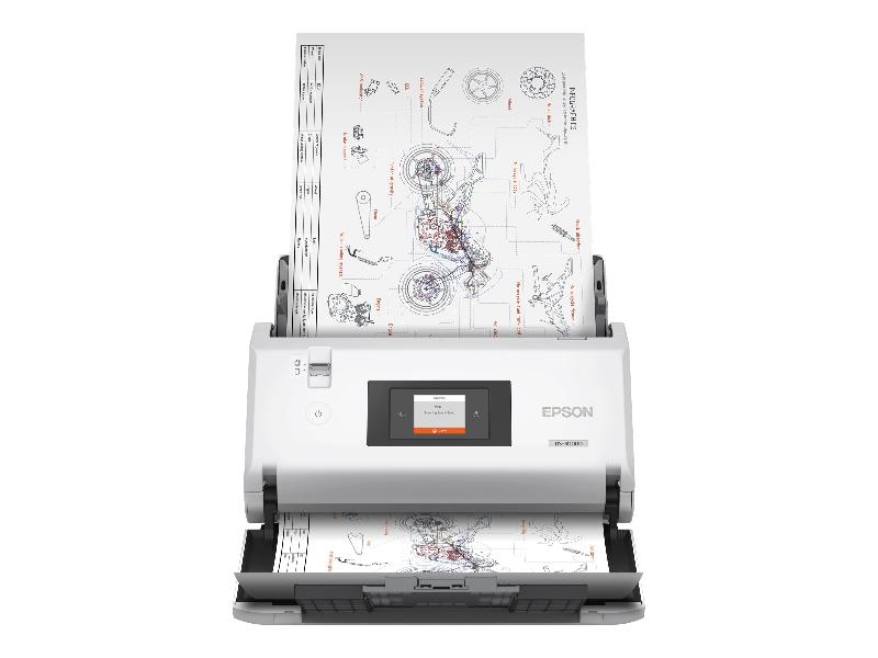 Design compacte sans compromis sur la fiabilitéNumérisation jusqu'à 70 ppm/140 ipm à 200 ou 300 dpi en couleurNumérisation de passeports et documents reliés jusqu'à 6 mm d'épaisseurGestion précise des documents grâce aux capteurs de protection du documentChargeur de documents haute capacité de 120 feuilles Grâce à la nouvelle technologie Epson Complex Production Architecture, le DS-30000 a été conçu selon les normes les plus strictes pour répondre aux besoins des entreprises les plus exigeantes.