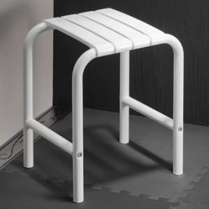 Tube aluminium époxy Ø 30 mm. Assise avec 8 lattes en polypropylène blanc. Largeur 554 mm, profondeur 425 mm. Livré démonté. Pou ...