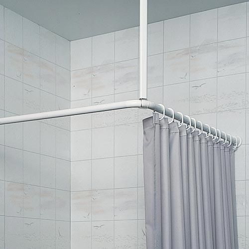 Pour une fixation rapide et aisée du rideau de douche. Rails pour rideau de douche en aluminium laqué blanc. La barre droite exten ...
