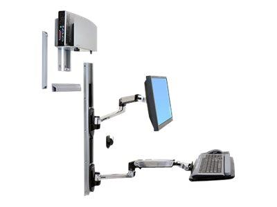 Les bras articulés sont dotés de capacités totales d'orientation et d'inclinaison et de 33 cm d'ajustement en hauteur, fournissant un ajustement ergonomique de premier ordreLa tablette ergonomique à clavier à inclinaison arrière vous garantit de garder les poignets en position neutre lors de la saisie de données, ce qui permet d'éviter des blessures provoquées par une tension répétée tout en augmentant le confort et la productivitéPour une station de travail intégrale et compactePositionnez sans effort le LCD et le clavier séparément pour obtenir la zone de visualisation et la position de saisie la plus confortable, tout en gardant un il sur votre patientIdéal pour les espaces restreints, le clavier se replie à 9 cm du mur en position de stockageAffichage double foyer pratique Construction robuste en aluminium poli !Positionnez sans effort votre écran et votre clavier dans une position optimale de travail, que vous soyez assis ou debout.