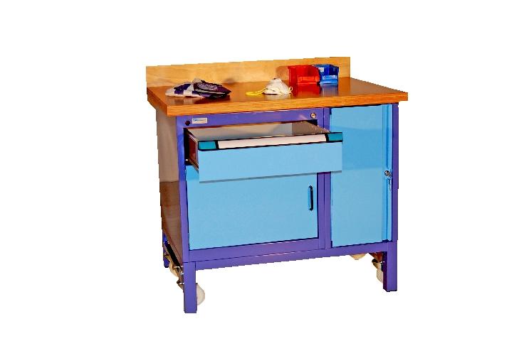 Descriptif du produit :Composition : 1 tiroir H=150 mm, 1 porte battante H=350 mm et 1 porte escamotable LxH = 180 x 500 mm, avec paroi arrière H=150 mm (MDF 19 mm).L x P établi : 1000 x 700 mm. Structure mécanosoudée en tôle d\'acier de haute qualité et pieds en tube section 50 x 50 mm. Plateau multiplis 40 mm. Fermeture centralisée avec système de sécurité anti-basculement de série avec bouton poussoir empà ...